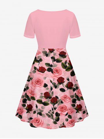 Plus Size Valentine's Day Rose Flower Leaf Print Cinched Dress - Light Pink - Xs