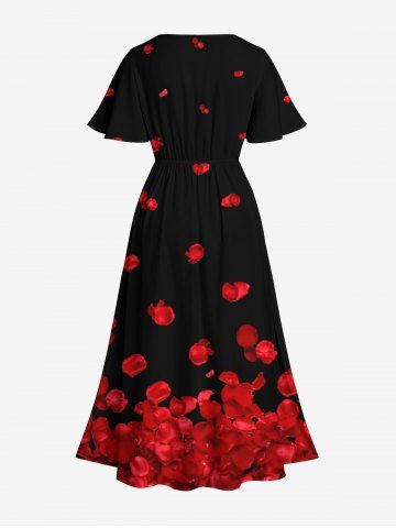 Plus Size > Plus Size Valentine's Day Rose Flower Petal Print Split Midi Dress