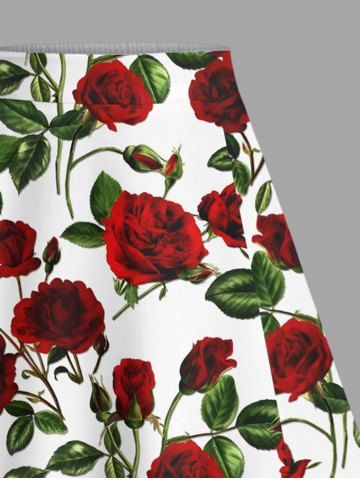 Plus Size Valentine's Day Rose Flowers Leaf Print Split Skirt - White - 1x