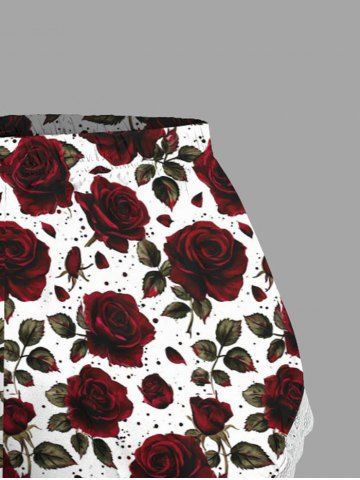 Plus Size Valentine's Day Rose Flowers Print Lace Trim Slip Pajama Shorts - Deep Red - M