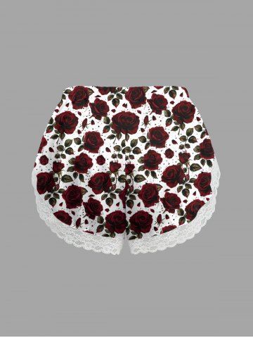 Plus Size Valentine's Day Rose Flowers Print Lace Trim Slip Pajama Shorts - Deep Red - 5xl