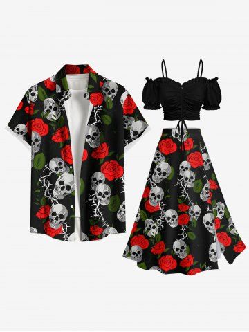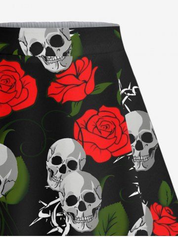 Plus Size Valentine's Day Rose Flowers Skulls Print Split Skirt - Black - M