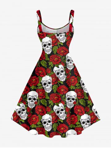 Plus Size > Plus Size Valentine's Day Skull Rose Flower Print Tank Dress