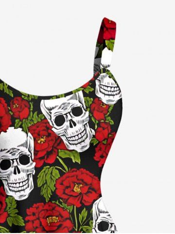 Plus Size > Plus Size Valentine's Day Skull Rose Flower Print Tank Dress