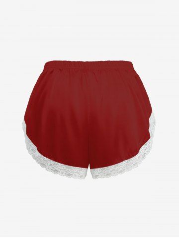 Plus Size Valentine's Day Solid Color Lace Trim Slip Pajama Shorts - Red - 2xl