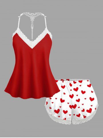 Plus Size Valentine's Day Solid Color Lace Trim Strappy Slip Pajama Top - Red - 6xl