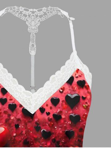 Plus Size > Valentines Heart Dip Dye Ombre Printed Lace Trim Crochet Pajama Top and Shorts Plus Size Matching Set