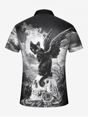 Plus Size Cat Wing Rose Flower Skull Cloud Sky Print Zipper Polo Shirt For Men - Black - 2xl