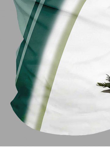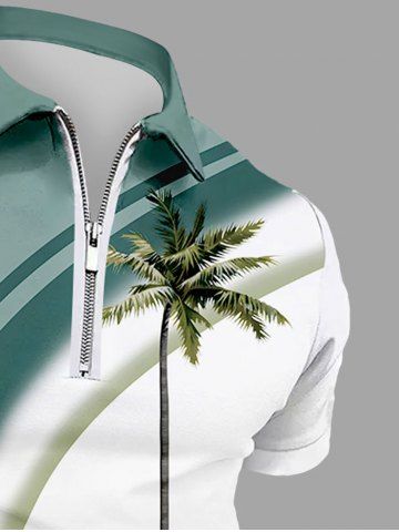 Plus Size Coconut Tree Curve Colorblock Print Zipper Hawaii Polo Shirt For Men - Multi-a - M
