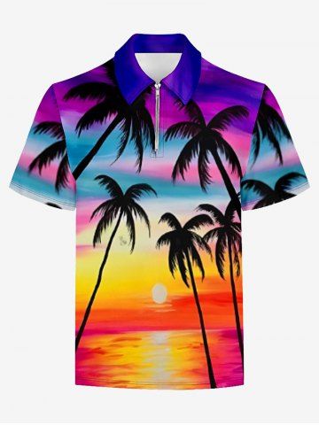 Polos > Plus Size Coconut Tree Ombre Sky Sun Print Hawaii Polo Shirt For Men