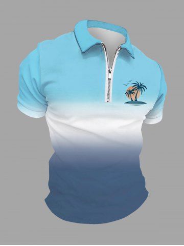 Plus Size Coconut Tree Sun Bird Ombre Print Zipper Hawaii Polo Shirt For Men - Multi-a - S