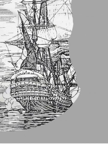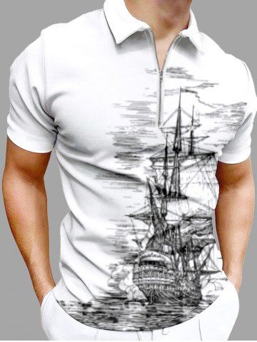 Plus Size Cruise Sailboat Sea Waves Print Zipper Polo Shirt For Men - White - L