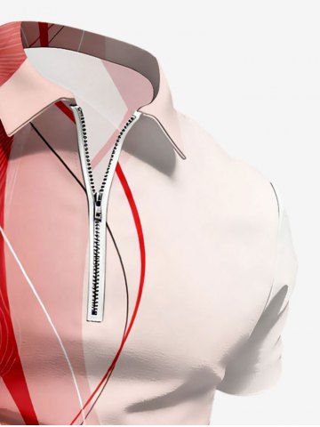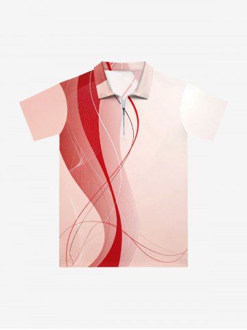 Plus Size Curve Ombre Print Hawaii Zipper Polo Shirt For Men - Coral Pink - Xs