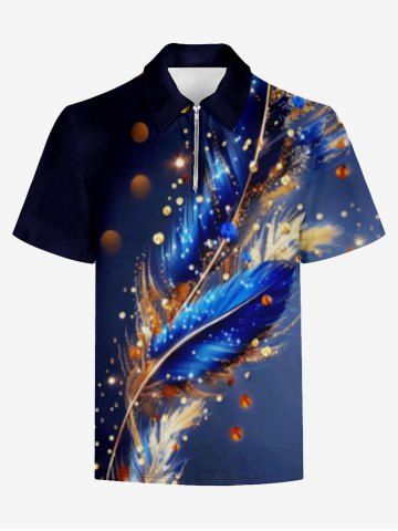 Plus Size Feather Galaxy Glitter Sparkling Sequin 3D Print Hawaii Polo Shirt For Men - Multi-a - Xl