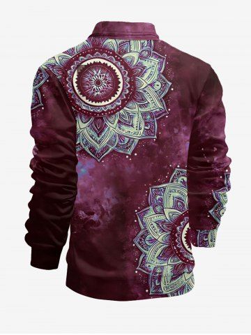 Plus Size Galaxy Tie Dye Flowers Print Zipper Polo Shirt For Men - Dull Purple - 2xl