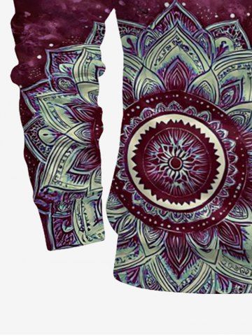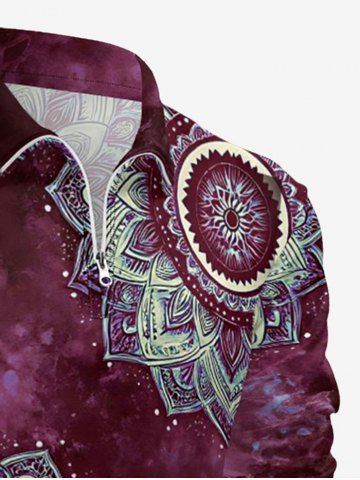 Plus Size Galaxy Tie Dye Flowers Print Zipper Polo Shirt For Men - Dull Purple - 3xl