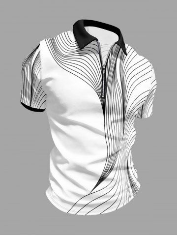 Plus Size Geometric Pattern Print Zipper Polo Shirt For Men - White - 2xl