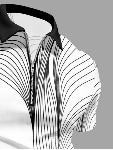 Plus Size Geometric Pattern Print Zipper Polo Shirt For Men - White - 5xl