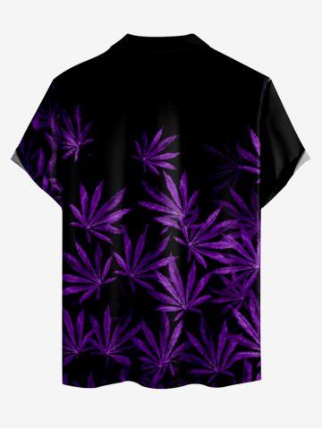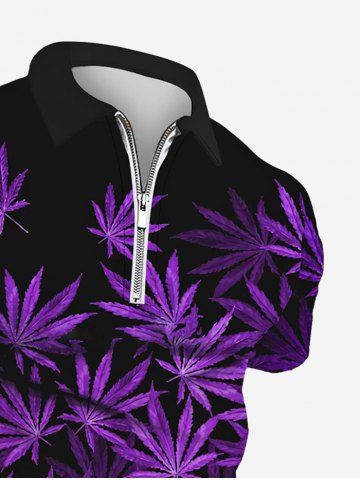 Plus Size Maple Leaf Print Zipper Hawaii Polo Shirt For Men - Black - 5xl