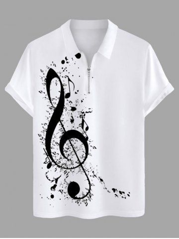 Plus Size Music Notes Ink Painting Splatter Print Zipper Polo Shirt For Men - White - M