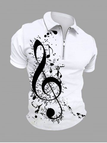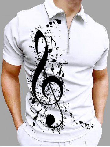 Plus Size Music Notes Ink Painting Splatter Print Zipper Polo Shirt For Men - White - 2xl