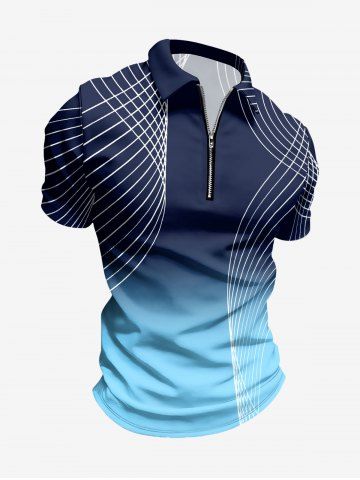 Plus Size Ombre Colorblock Geometric Line Print Zipper Polo Shirt For Men - Deep Blue - Xs