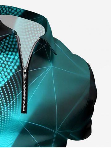 Plus Size Ombre Lightwave Print Hawaii Zipper Polo Shirt For Men - Black - 5xl