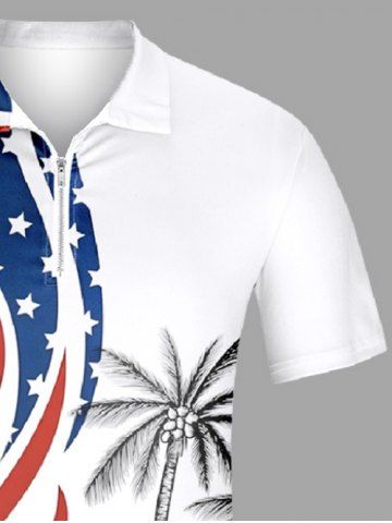 Plus Size Patriotic American Flag Coconut Tree Print Zipper Hawaii Polo Shirt For Men - White - Xs