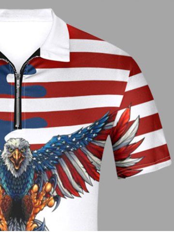 Plus Size Patriotic American Flag Eagle Print Zipper Polo Shirt For Men - White - Xs