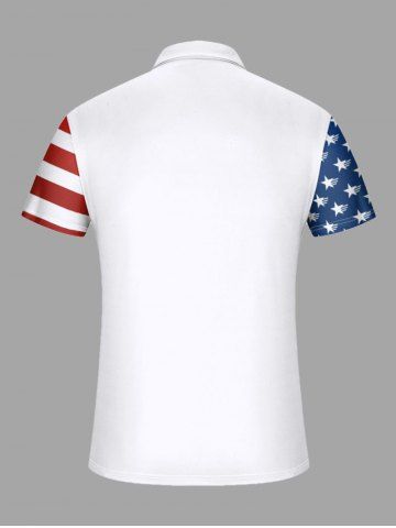 Plus Size Patriotic American Flag Eagle Print Zipper Polo Shirt For Men - White - 3xl