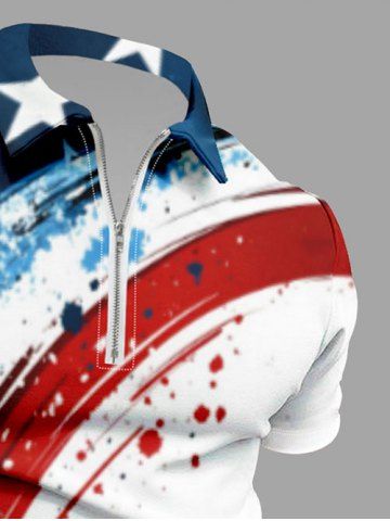 Plus Size Patriotic American Flag Painting Splatter Print Zipper Turn-down Collar Polo Shirt For Men - White - Xl