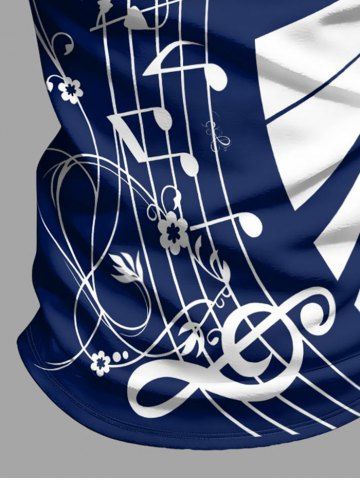 Plus Size Piano Music Symbol Print Hawaii Zipper Polo Shirt For Men - Deep Blue - M