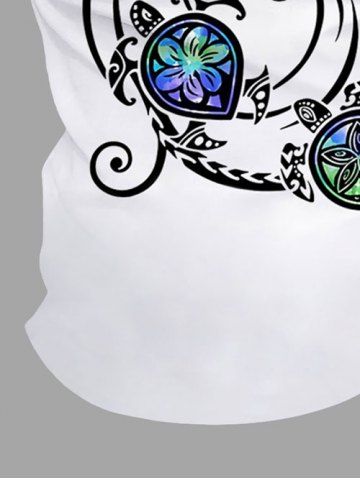 Plus Size Sea Waves Floral Turtle Print Zipper Hawaii Polo Shirt For Men - White - L