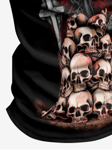 Plus Size Skull Crow Cross Letters Print Halloween Zipper Turn-down Collar Polo Shirt For Men - Black - 2xl