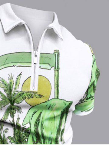 Plus Size Skull Sea Wave Surfer Coconut Tree Sun Scythe Print Hawaii Zipper Polo Shirt For Men - White - Xs