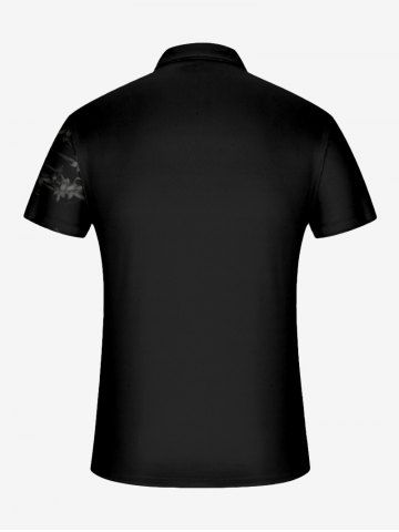 Plus Size Two Tone Cat Butterfly Floral Print Half Zipper Polo Shirt For Men - Black - 3xl