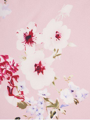 Butterfly Floral Print A Line Vacation Sundress and Bowknot Surplice T Shirt Set - Red - Xxl