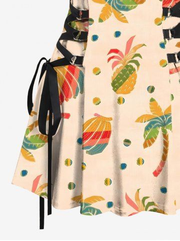 Coconut Tree Banana Pineapple Spotted Print Hawaii Lace Up A Line Tank Dress - Light Coffee - Xs