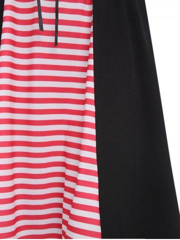 Colorblock Striped Print Ruched Lace Up High Waist A Line Mini Dress - Black - M