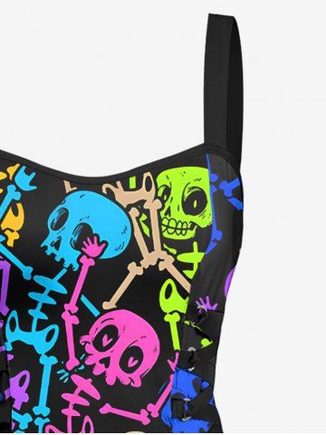 Colorful Skeleton Print Hawaii Lace Up A Line Tank Dress - Black - M