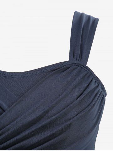 Daisy Flowers Leaf Print Surplice Ruched Heart Buckle Tank Dress - Blue - Xl