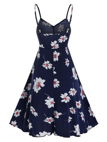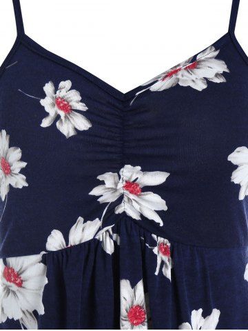 Floral Print Ruched Cami A Line Dress - Cadetblue - Xl