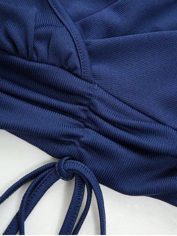 Flowers Tie Dye Print Ruched Ruffles Cami Dress With Cinched Surplice Top - Deep Blue - Xxxl