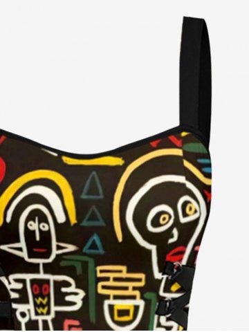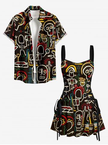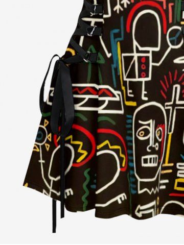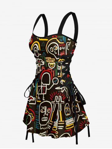 Funny Graphic Print Hawaii Lace Up A Line Dress - Black - Xxxl