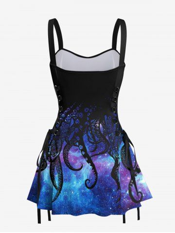 Galaxy Ombre Octopus Print Lace Up Tank Dress - Black - M