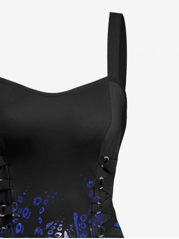Galaxy Ombre Octopus Print Lace Up Tank Dress - Black - Xl