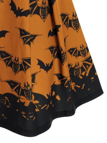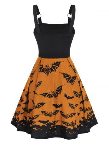Lace Up Bat Print Mini Cami Dress - Halloween Orange - M