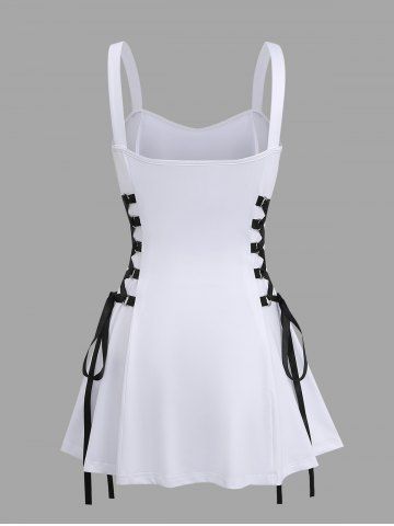 Lace Up Solid A Line Tank Dress - White - Xxxl