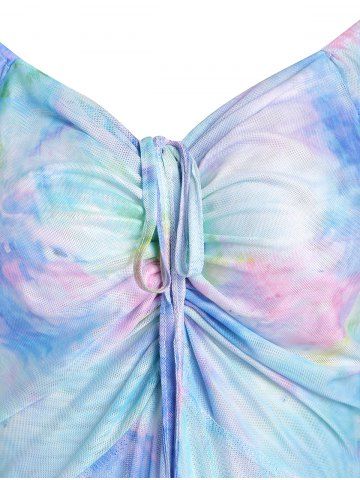 Print Dresses > Mesh Overlay Tie Dye Cinched Handkercheif Dress