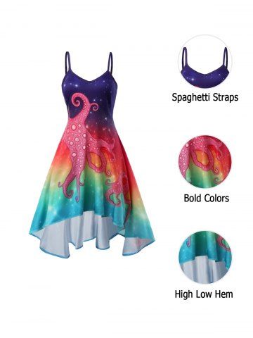 Octopus Print Adjustable Spaghetti Strap High Low Midi Cami Dress - Multi - Xl